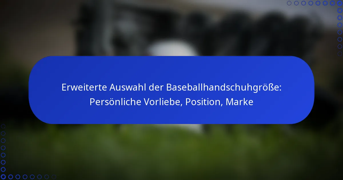 Die Wahl der richtigen Handschuhgröße ist entscheidend für die Leistung und den Komfort, da verschiedene Positionen spezifische Größen erfordern, um das Spiel zu verbessern. Infield-Spieler, Outfield-Spieler, Catcher und Pitcher haben jeweils einzigartige Empfehlungen für Handschuhgrößen, die auf ihren Rollen auf dem Feld basieren.